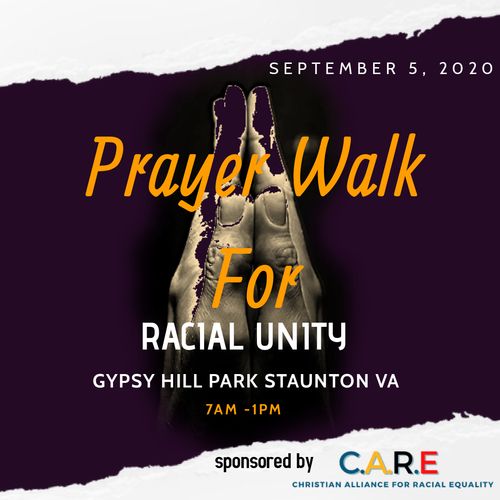 You are invited this Saturday from 7-1 to join with other believers from across the Valley for a prayer walk at Gypsy Hill Park in Staunton as we pray for racial healing and unity in our community and our nation. What a great opportunity for the Church to gather and raise our voices in prayer and worship the Lord together.